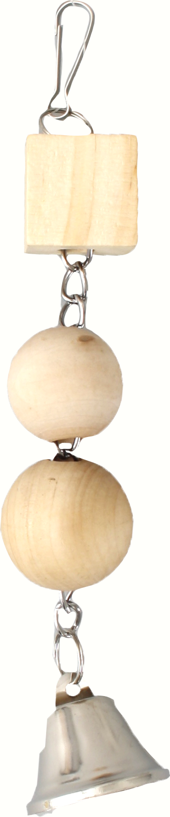 Игрушка для птиц, деревянные кубик и шарики на цепочке, с колокольчиком, 25 см