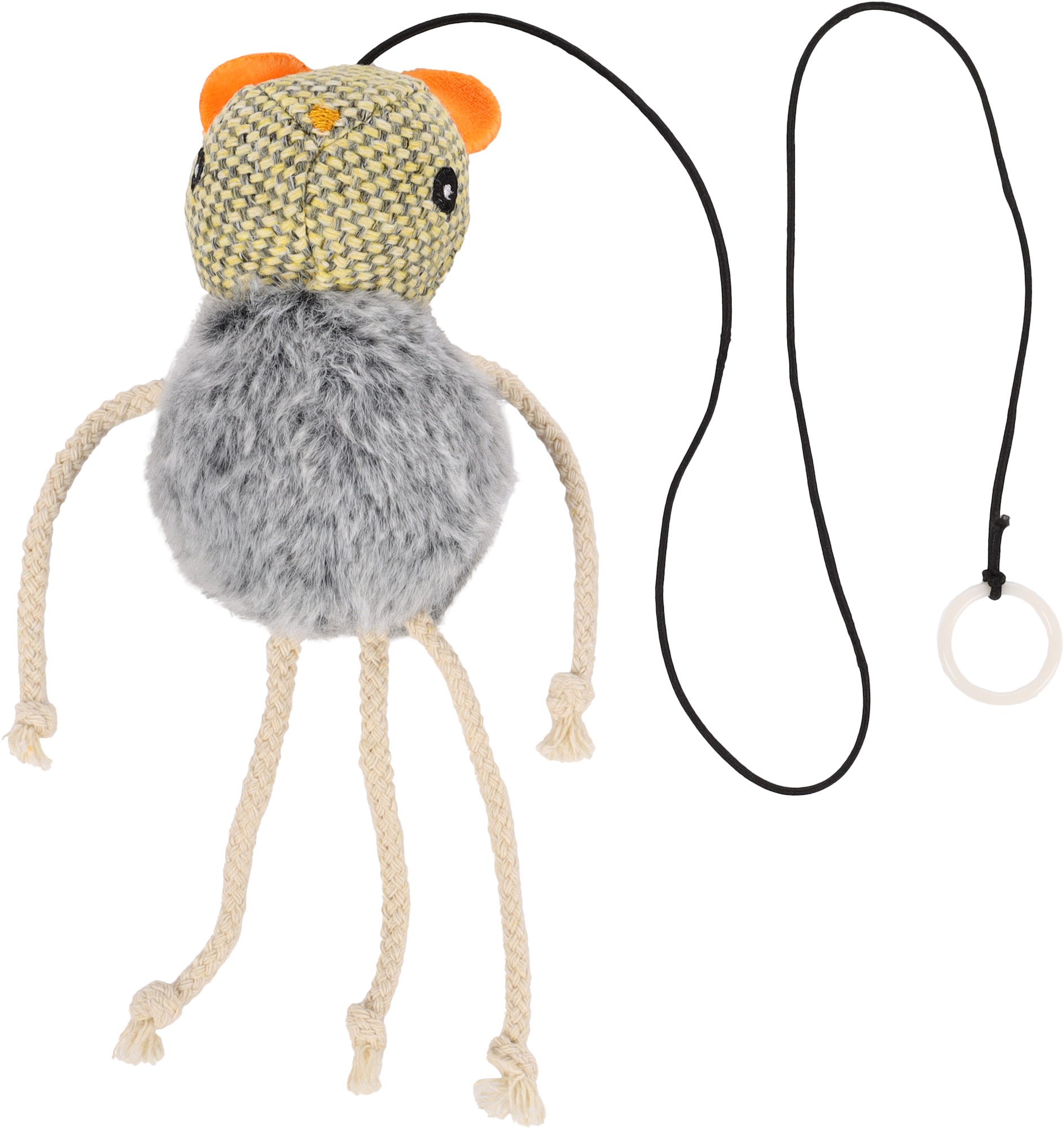 Игрушка для кошек "Мышь на резинке" 12 см, текстиль, жёлтый