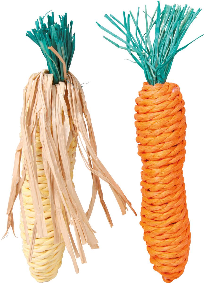 Набор игрушек для грызунов "Морковь и Кукуруза", 15 см, сизаль, 2 шт.